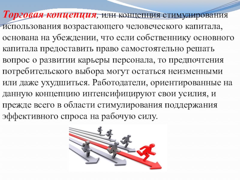 Слайд 22Торговая концепция, или концепция стимулирования использования возрастающего человеческого капитала, основана на