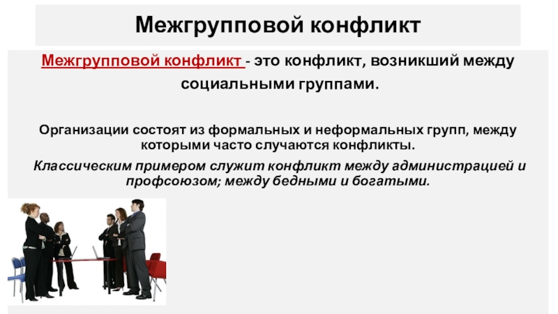 Межгрупповой конфликт - это конфликт, возникший между
