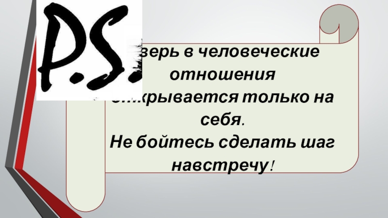 Слайд 45Дверь в человеческие отношения открывается только на себя.