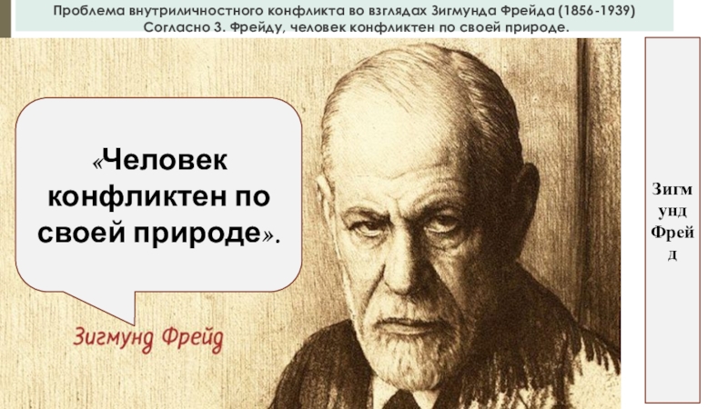 Слайд 15Проблема внутриличностного конфликта во взглядах Зигмунда Фрейда (1856-1939)