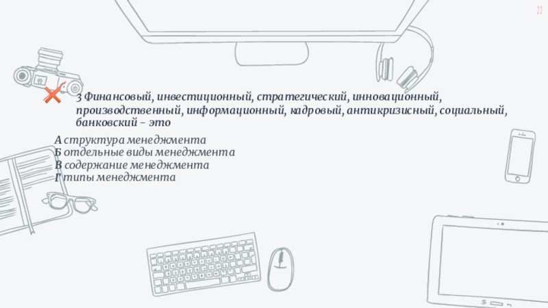 Слайд 223 Финансовый, инвестиционный, стратегический, инновационный, производственный, информационный, кадровый, антикризисный, социальный, банковский