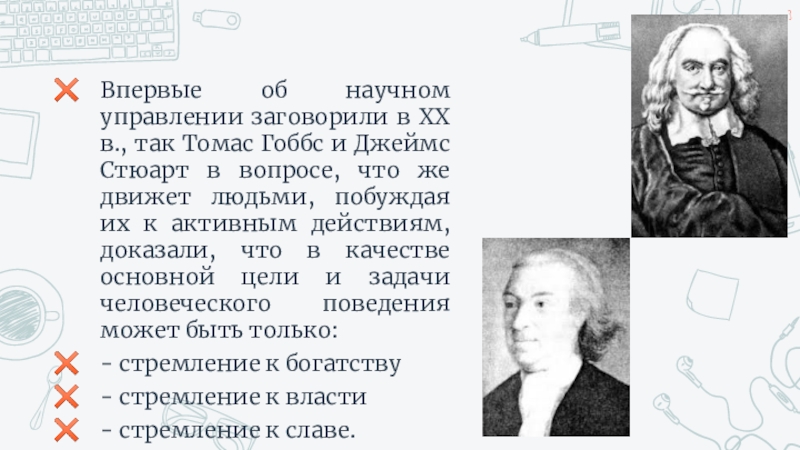 Слайд 3Впервые об научном управлении заговорили в ХХ в., так Томас Гоббс