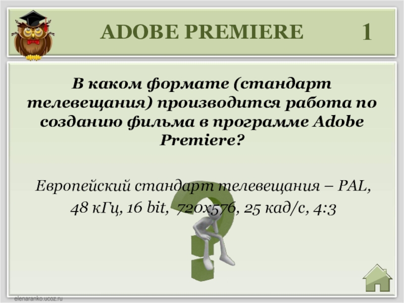 В каком формате (стандарт телевещания) производится работа по созданию фильма в программе Adobe Premiere?