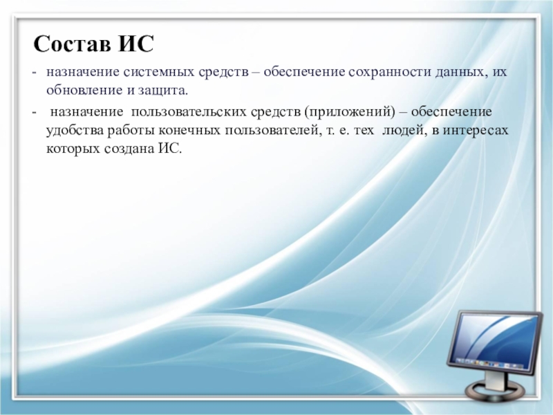назначение пользовательских средств (приложений) – обеспечение удобства работы конечных пользователей, т. е. тех людей, в интересах которых создана ИС.