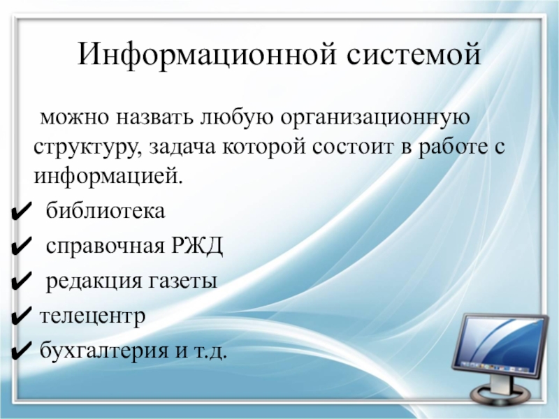 информационная система специалистов – офисная автоматизация, обработка знаний (включая экспертные системы);