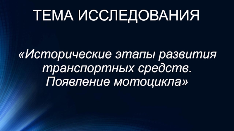 ТЕМА ИССЛЕДОВАНИЯ«Исторические этапы развития транспортных средств. Появление мотоцикла»