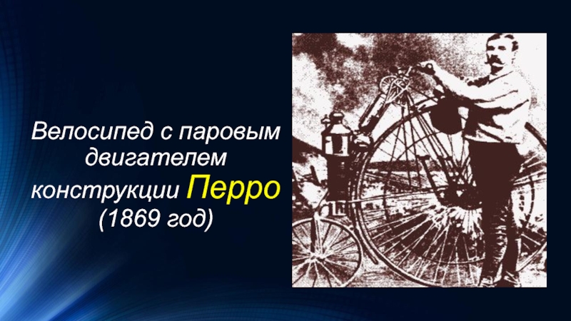 Слайд 16Велосипед с паровым двигателем конструкции Перро (1869 год)
