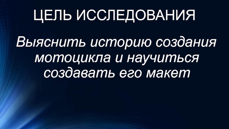ЦЕЛЬ ИССЛЕДОВАНИЯ Выяснить историю создания мотоцикла и научиться создавать его макет