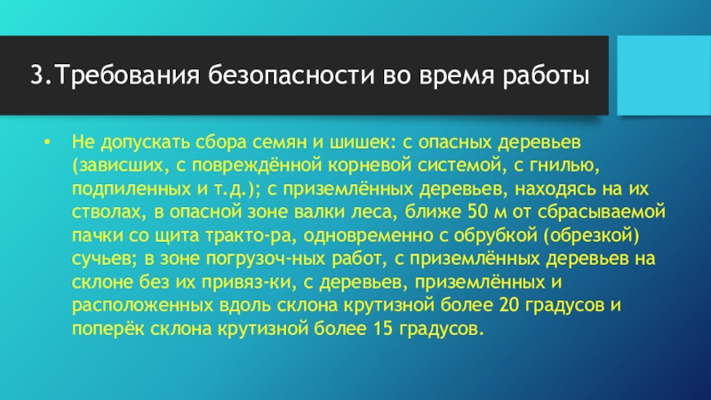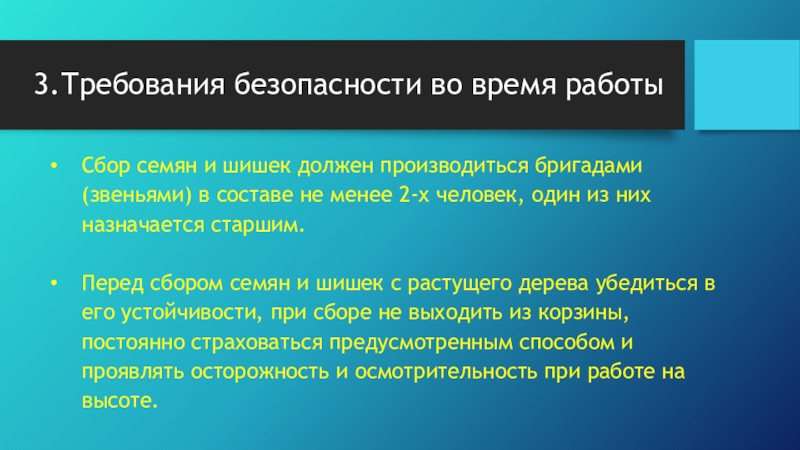 Слайд 21Требования безопасности при сборе семян, плодов и шишек