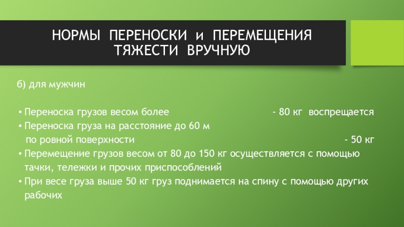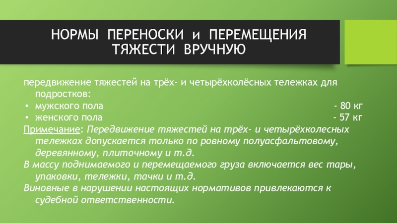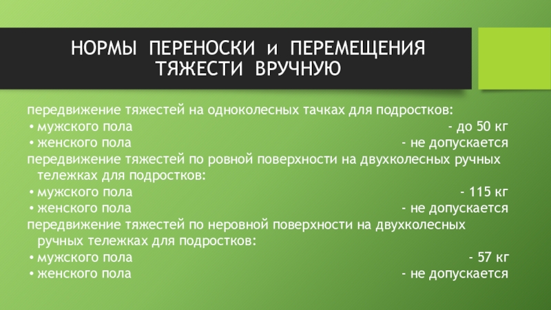 НОРМЫ ПЕРЕНОСКИ и ПЕРЕМЕЩЕНИЯ ТЯЖЕСТИ ВРУЧНУЮ
