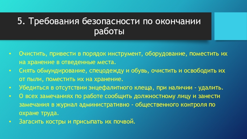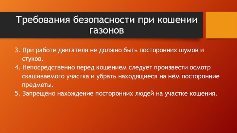 5. Запрещено нахождение посторонних людей на участке кошения.