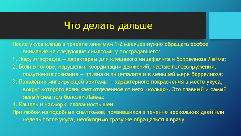 После укуса клеща в течение минимум 1-2 месяцев нужно