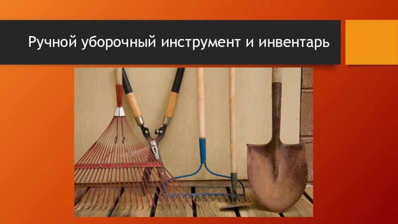Слайд 59Ручной уборочный инструмент и инвентарь
