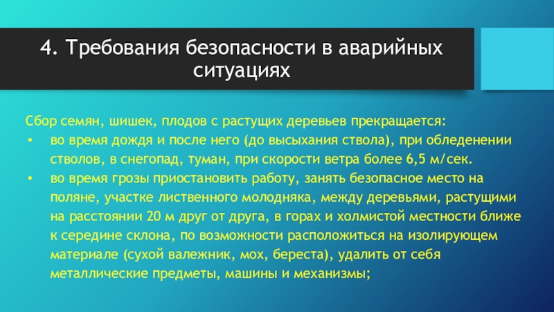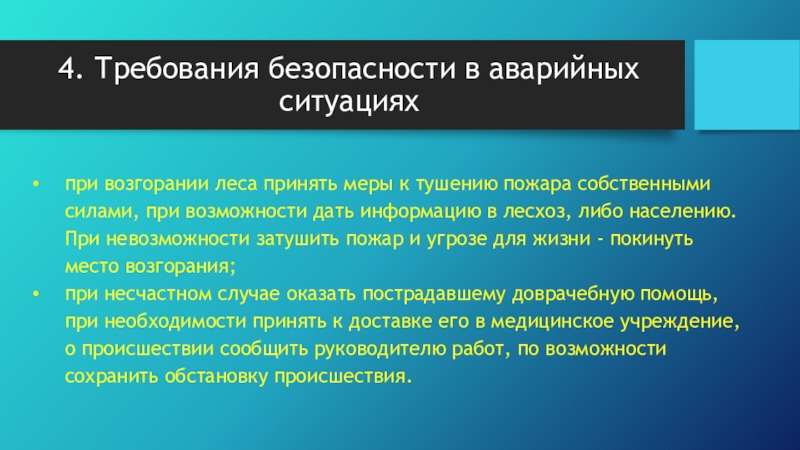 Слайд 304. Требования безопасности в аварийных ситуациях