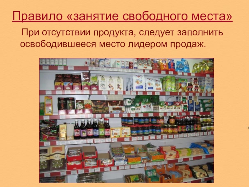 Слайд 38Принцип определенного места товара на полке