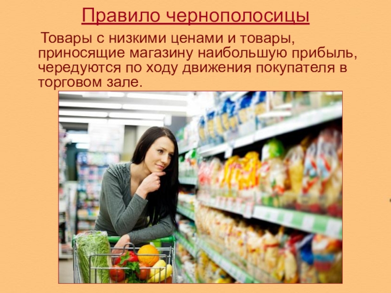 Слайд 11Правило «товар по ходу движения покупателя»