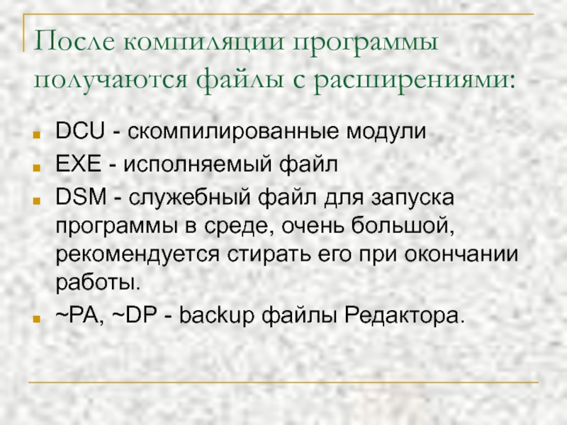 Слайд 10После компиляции программы получаются файлы с расширениями: