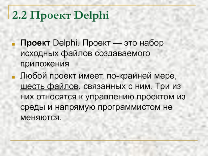 Проект Delphi. Проект — это набор исходных файлов создаваемого