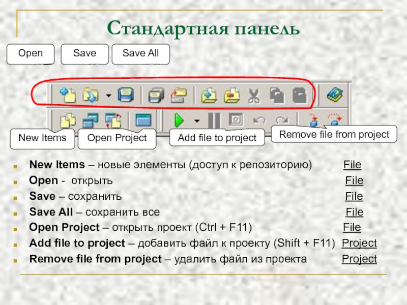 где находятся файлы, используется команда File – Save All или кнопка на панели инструментов Save All, для сохранения активного модуля и формы команда File – Save или кнопка на панели инструментов Save.