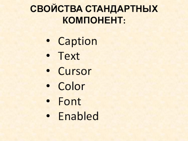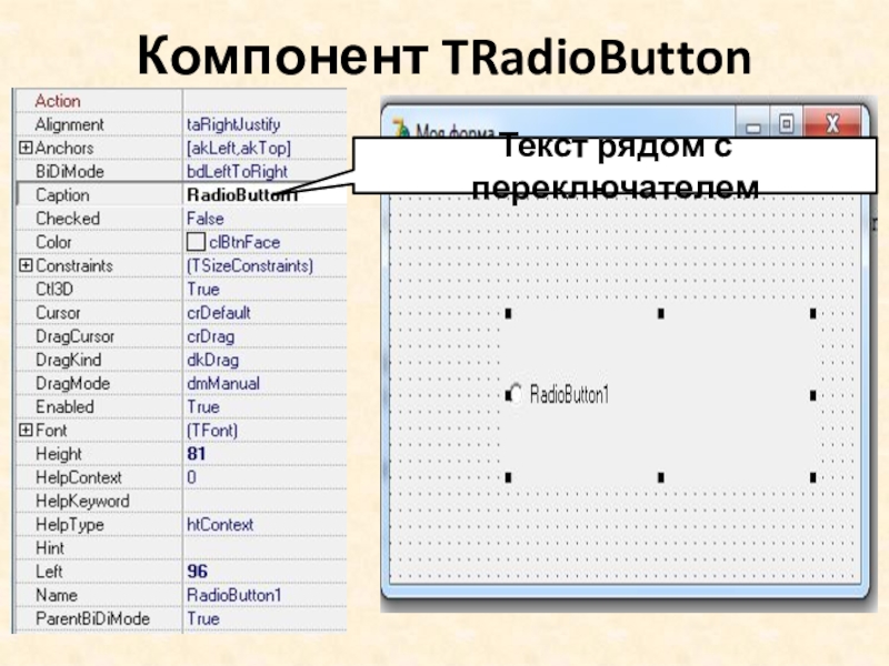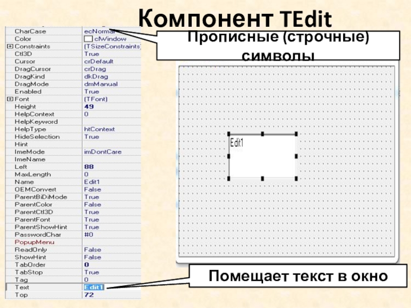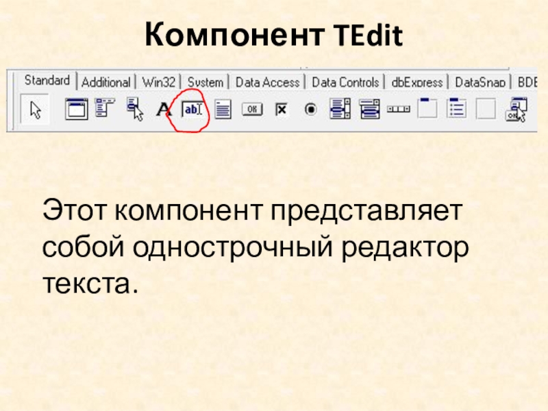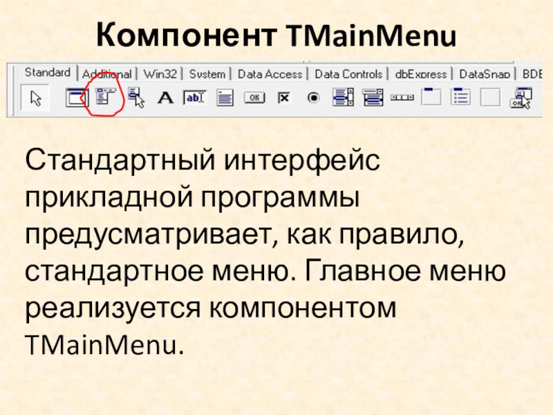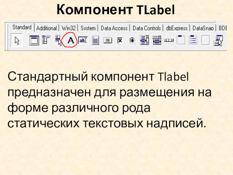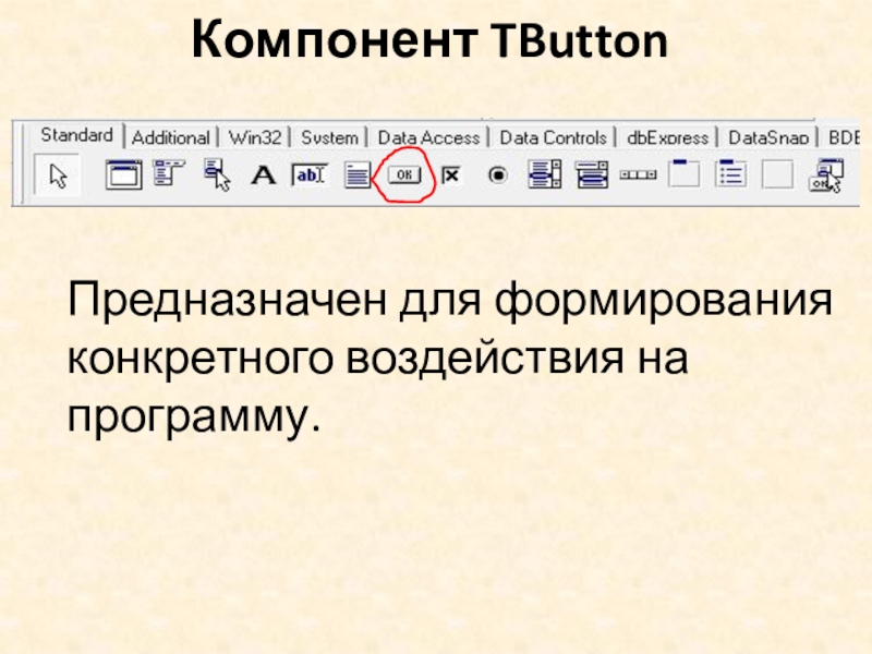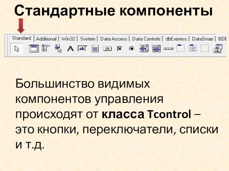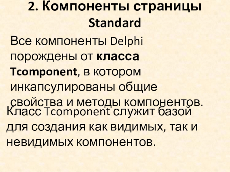Класс Tcomponent служит базой для создания как видимых, так и невидимых компонентов.