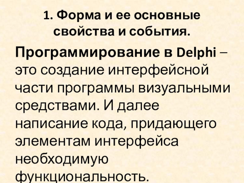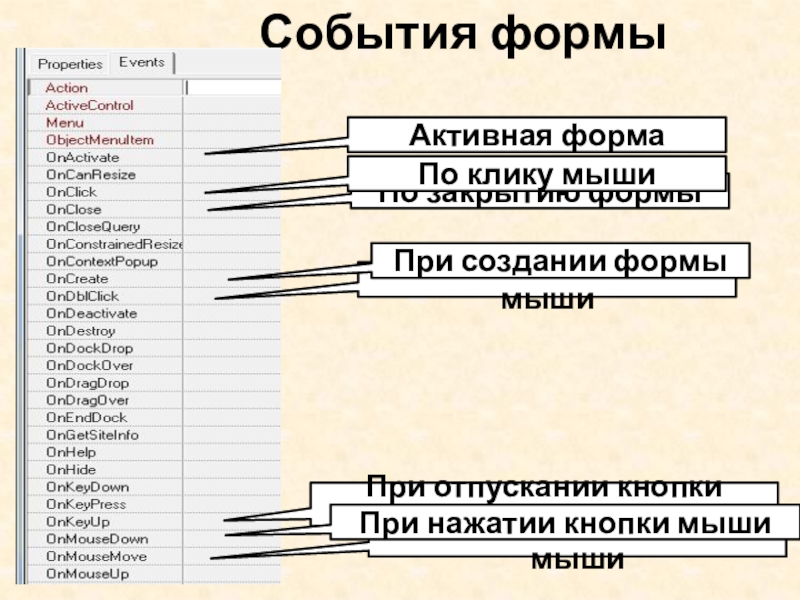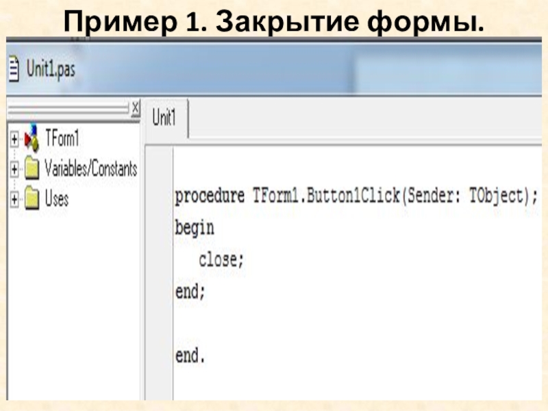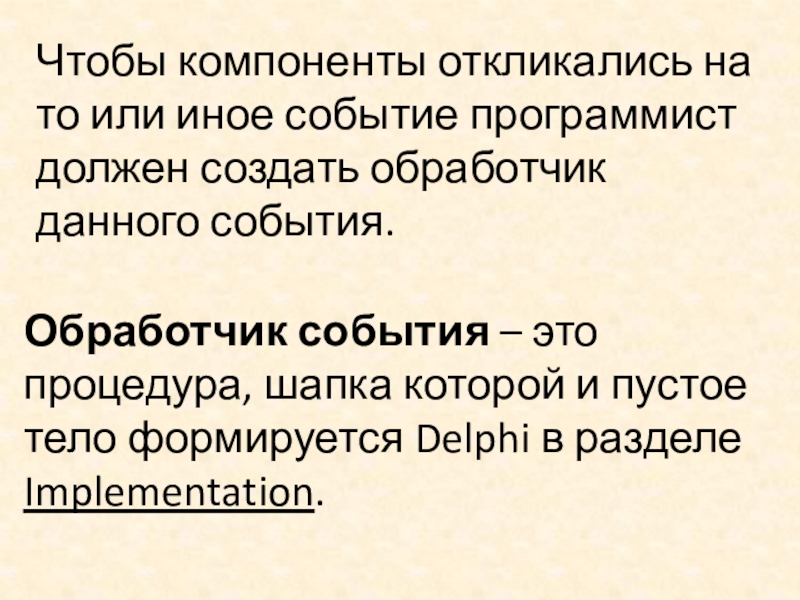 Обработчик события – это процедура, шапка которой и пустое тело формируется Delphi в разделе Implementation.