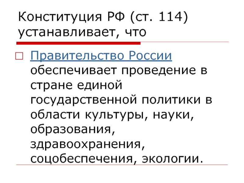 Слайд 9Конституция РФ (ст. 114) устанавливает, что