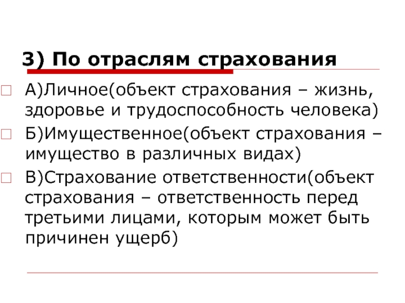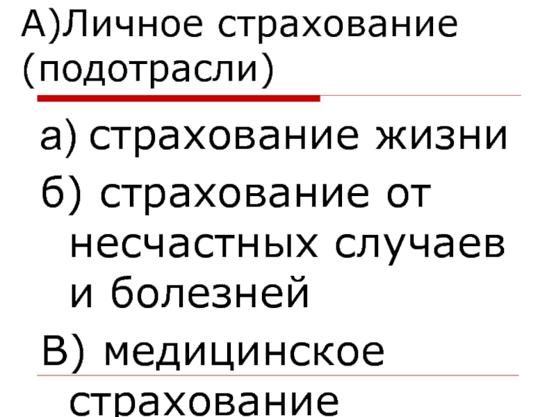 А)Личное(объект страхования – жизнь, здоровье и трудоспособность человека)