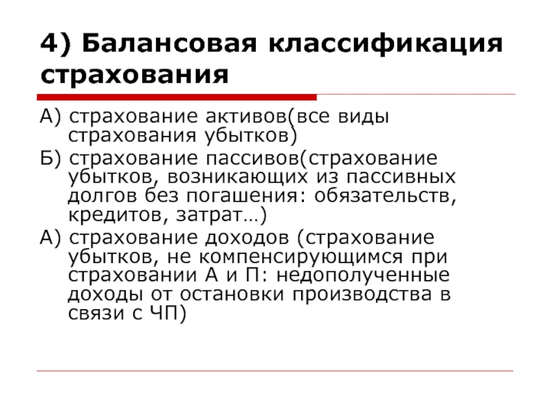 А) страхование доходов (страхование убытков, не компенсирующимся при страховании А и П: недополученные доходы от остановки производства в связи с ЧП)