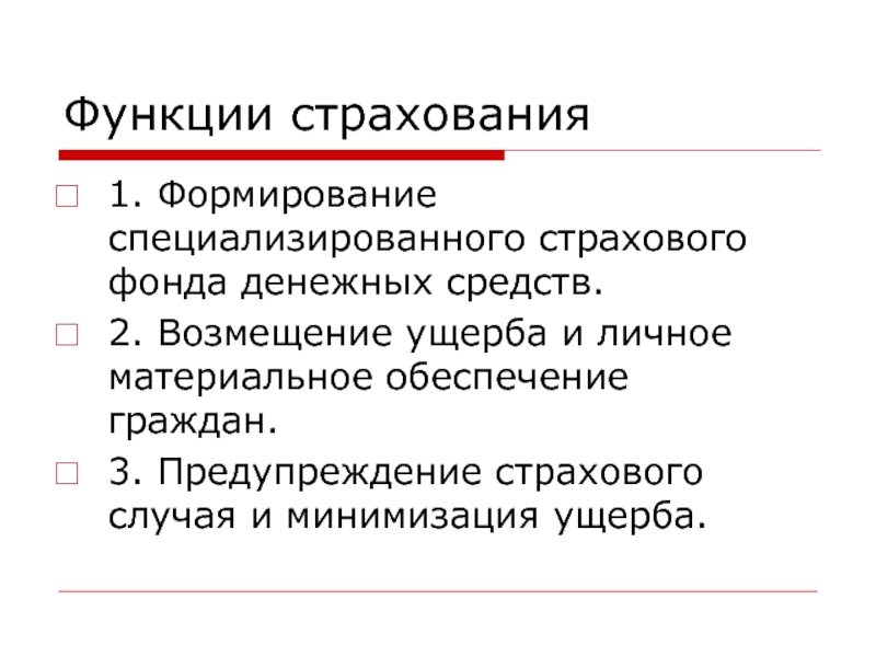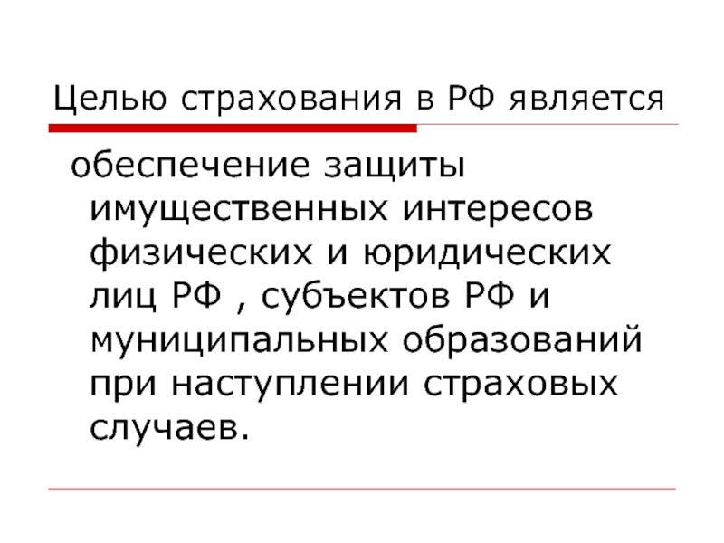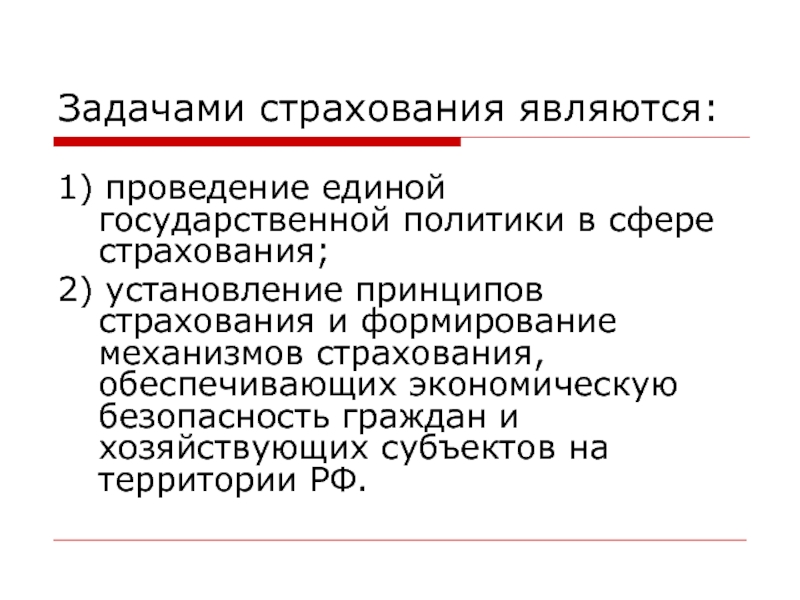 принципов страхования и формирование механизмов страхования, обеспечивающих экономическую безопасность граждан и хозяйствующих субъектов на территории РФ.