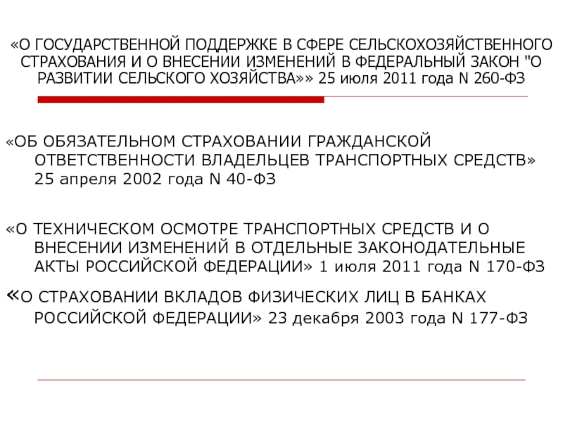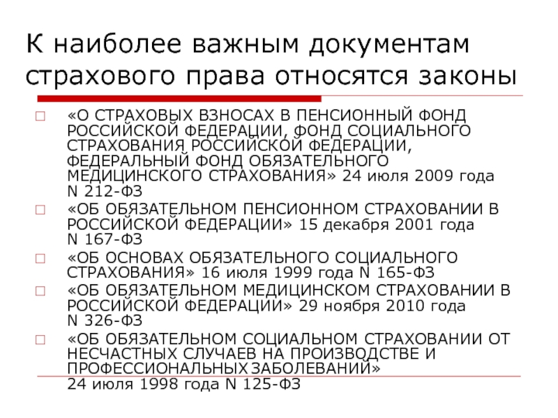 Слайд 44К наиболее важным документам страхового права относятся законы