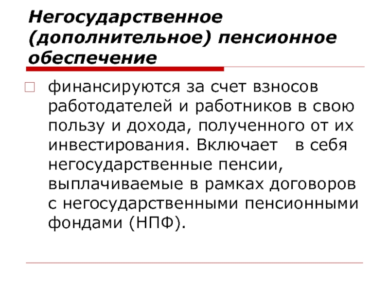 Слайд 23Негосударственное (дополнительное) пенсионное обеспечение