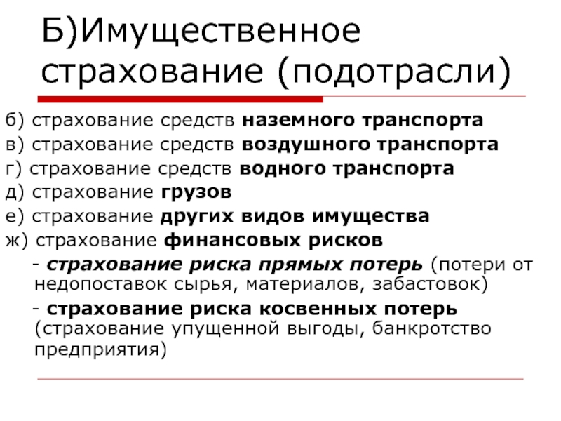 Слайд 49Б)Имущественное страхование (подотрасли)