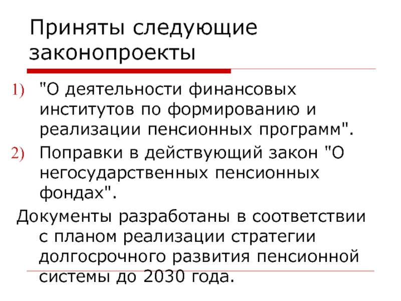 Документы разработаны в соответствии с планом реализации стратегии долгосрочного развития пенсионной системы до 2030 года.