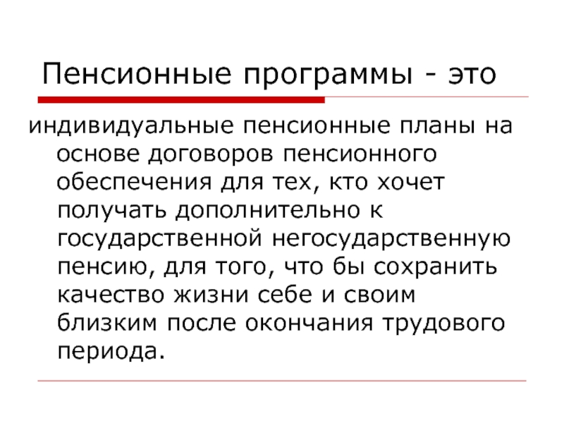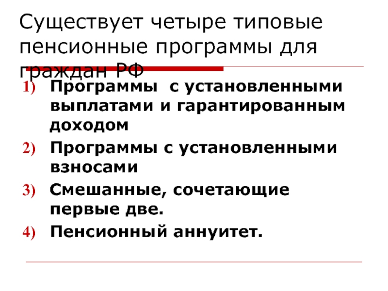 Слайд 27Существует четыре типовые пенсионные программы для граждан РФ