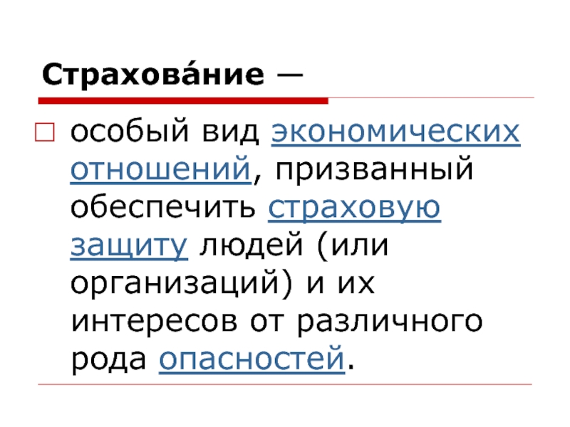 особый вид экономических отношений, призванный обеспечить страховую защиту людей (или