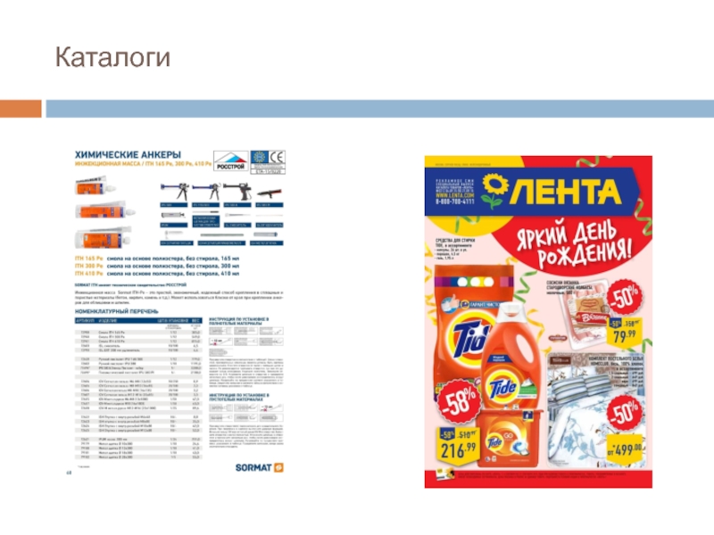 Сложные же, напротив, выполняются типографским способом с цветными фотографиями товаров.