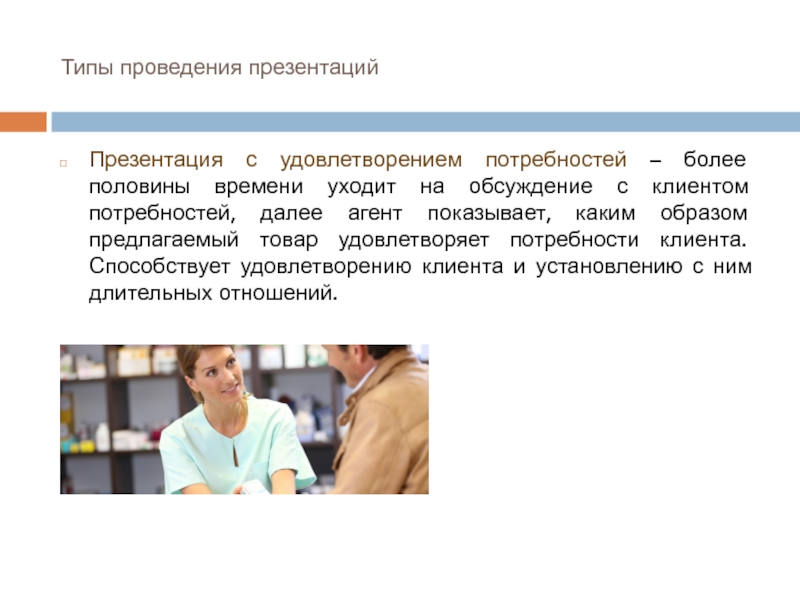 Презентация с удовлетворением потребностей – более половины времени уходит