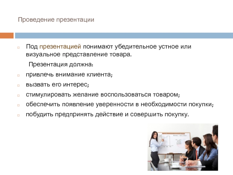 Под презентацией понимают убедительное устное или визуальное представление товара.