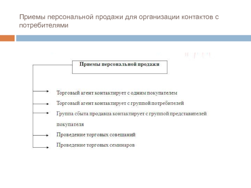 Слайд 26Приемы персональной продажи для организации контактов с потребителями
