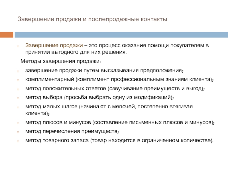 Методы завершения продажи: