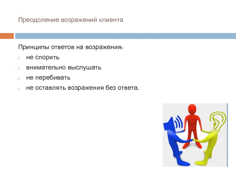 Слайд 21Преодоление возражений клиента