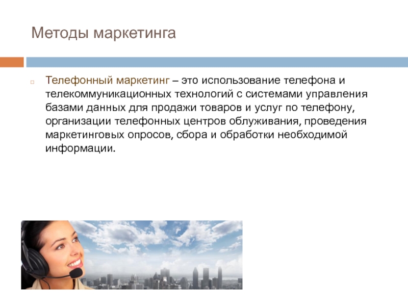 Телефонный маркетинг – это использование телефона и телекоммуникационных технологий с