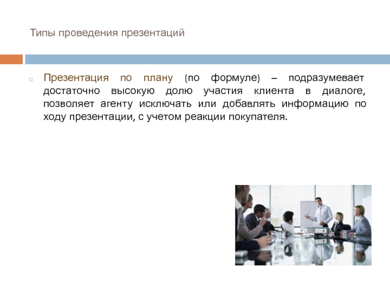 Презентация по плану (по формуле) – подразумевает достаточно высокую