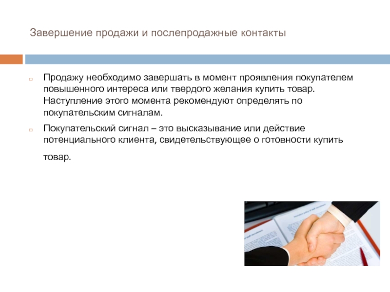 Слайд 23Завершение продажи и послепродажные контакты