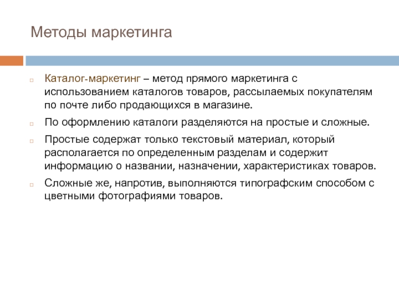 Каталог-маркетинг – метод прямого маркетинга с использованием каталогов товаров, рассылаемых