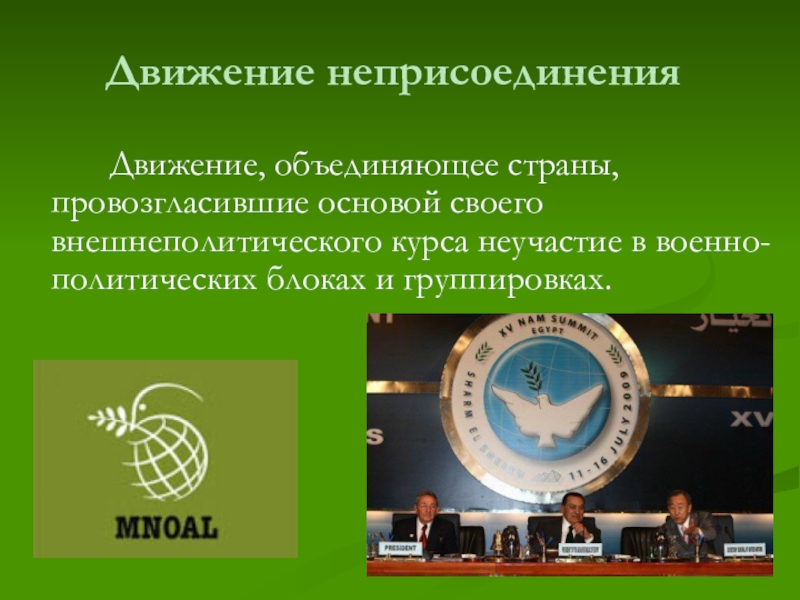 своего внешнеполитического курса неучастие в военно-политических блоках и группировках.