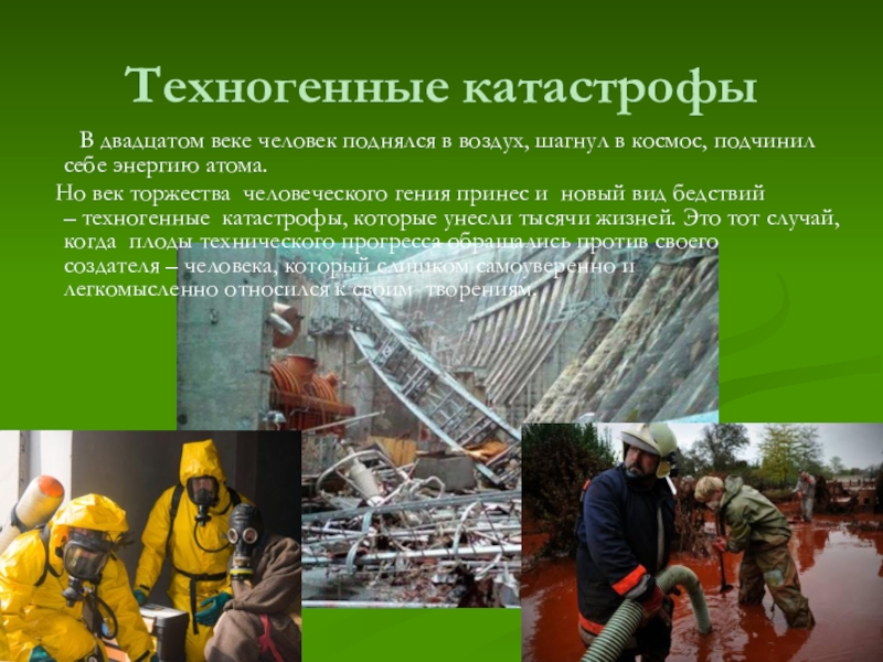 Но век торжества человеческого гения принес и новый вид бедствий – техногенные катастрофы, которые унесли тысячи жизней. Это тот случай, когда плоды технического прогресса обращались против своего создателя – человека, который слишком самоуверенно и легкомысленно относился к своим творениям.