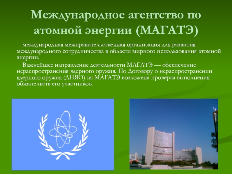 Слайд 31Международное агентство по атомной энергии (МАГАТЭ)