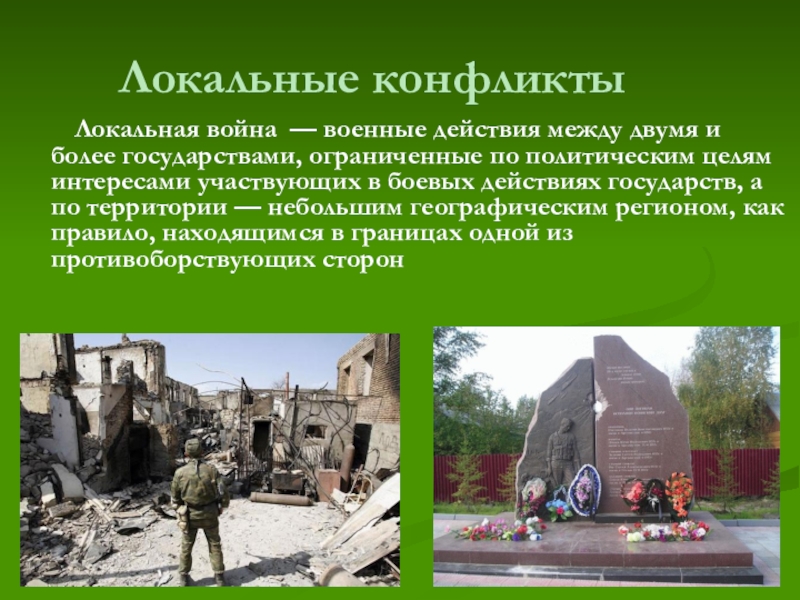 действия между двумя и более государствами, ограниченные по политическим целям интересами участвующих в боевых действиях государств, а по территории — небольшим географическим регионом, как правило, находящимся в границах одной из противоборствующих сторон