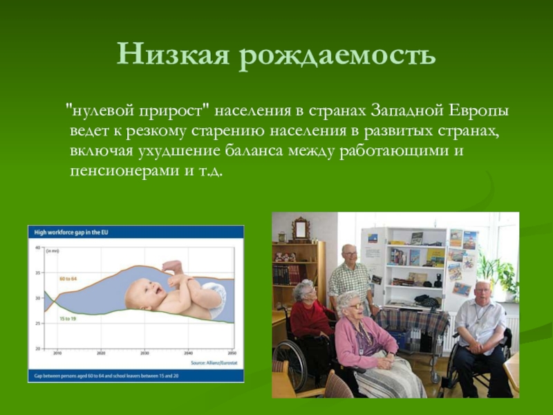 Европы ведет к резкому старению населения в развитых странах, включая ухудшение баланса между работающими и пенсионерами и т.д.